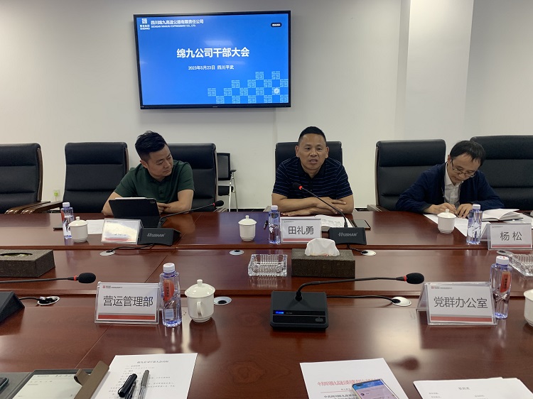 5月23日下午,绵九公司在平武管理处召开干部大会,会议由绵九公司党委副书记、副总经理、工会主席杨松主持,绵九公司党委书记,董事长田礼勇出席会议并讲话。