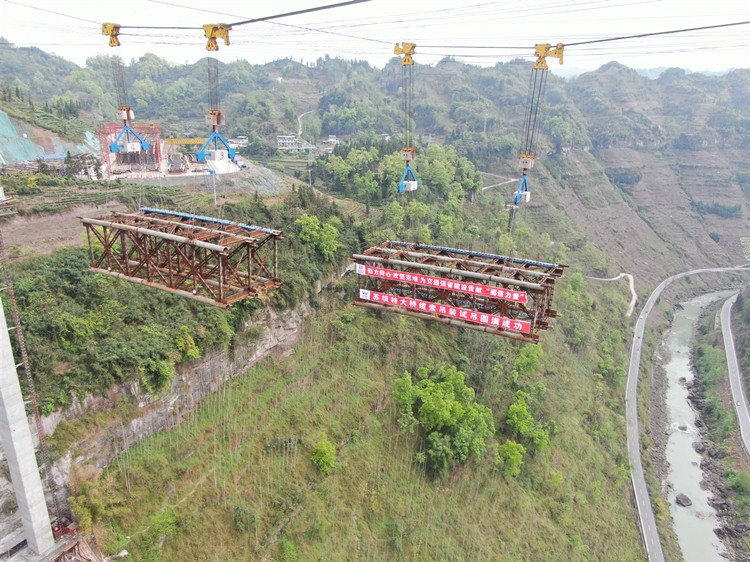 3月28日,乐西高速苏坝特大桥施工现场,缆索吊装系统试吊圆满完成,为后续缆索吊装系统投入使用迈出了坚实的一步,对苏坝特大桥劲性骨架节段安装有序施工提供了有效保障。