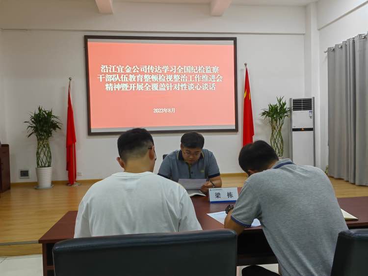 8月22日,沿江宜金公司纪委在公司雷波驻地组织召开专题会,传达学习全国纪检监察干部队伍教育整顿检视整治工作推进会精神和省纪委监委自查自纠工作方案。公司纪委书记梁栋聚焦本单位纪检干部存在问题,开展全覆盖针对性谈心谈话。