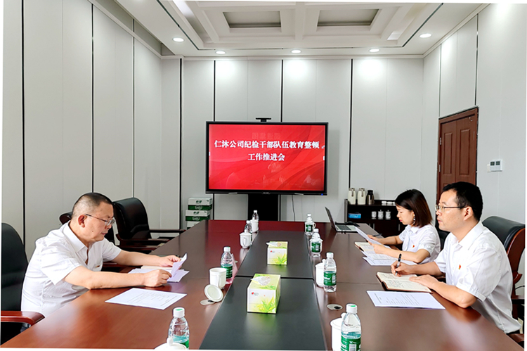 为持续推进仁沐公司纪检干部队伍教育整顿工作,8月30日,仁沐公司召开纪检干部队伍教育整顿工作推进会,公司党委副书记、总经理赵明雄主持会议并讲话,纪检办公室全体人员参加。